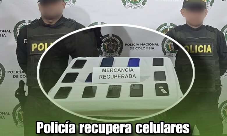 La Policía Nacional recuperó varios teléfonos celulares, avaluados en aproximadamente 10 millones de pesos, en el municipio de Chigorodó. Los equipos fueron arrojados en una bolsa por varios ciudadanos que huyeron al notar la presencia de los uniformados durante labores de patrullaje.